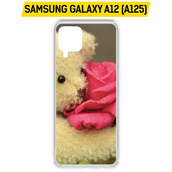 Чехол-накладка Clear Case Медвежонок с розой для Samsung Galaxy A12 (A125)