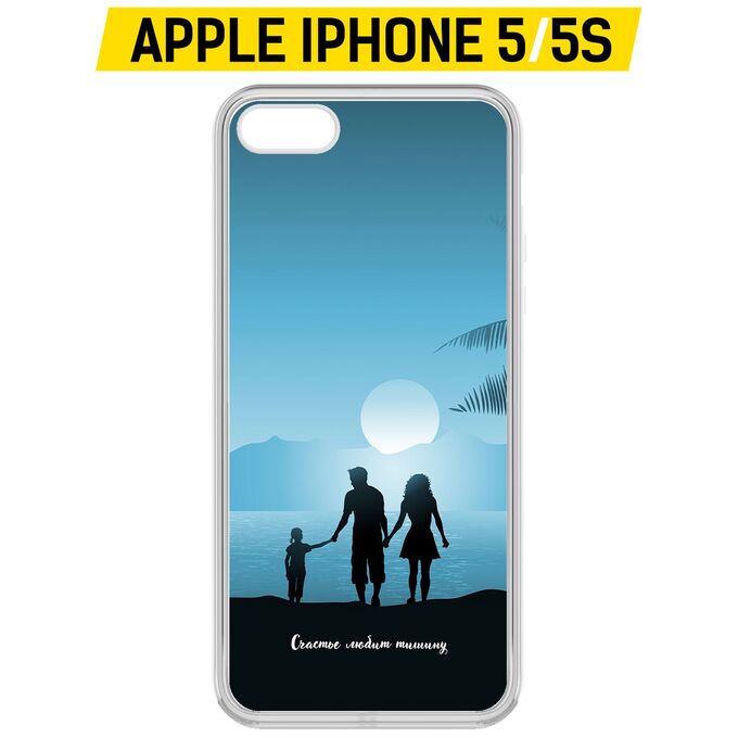 Чехол-накладка Clear Case Счастье любит тишину для iPhone 5/5s надежно защитит Ваш смартфон от повреждений, загрязнений, пыли и царапин. В руке не скользит, впритык садится на корпус, не изменяя габариты смартфона, точное соответствие всем разъемам и кнопкам, портам и камерам. Чехол-накладку Clear Case можно использовать с беспроводной зарядкой. Чехол выполнен из качественного, мягкого на ощупь силикона, одновременно легкий и прочный, гибкий и эластичный.