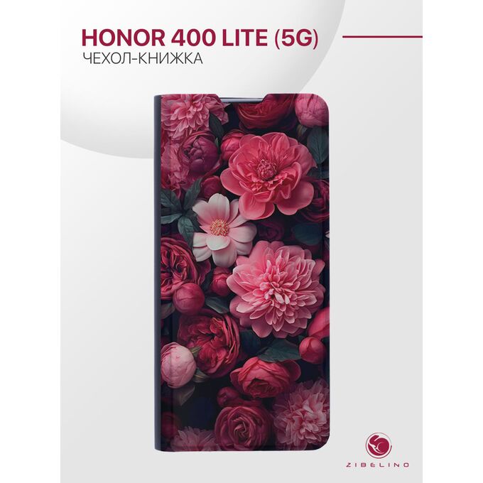 Чехол Premium Book на Honor 400 Lite (5G) с рисунком, противоударный, с магнитом, черный принт ПИОНЫ КРАСНЫЕ (Хонор 400 Лайт)
