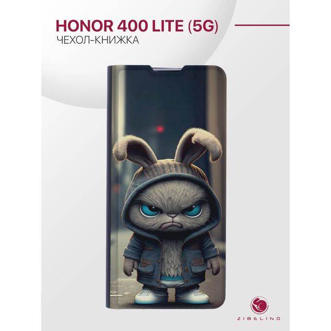 Чехол Premium Book на Honor 400 Lite (5G) с рисунком, противоударный, с магнитом, черный принт ЗЛОЙ ЗАЯЦ (Хонор 400 Лайт)