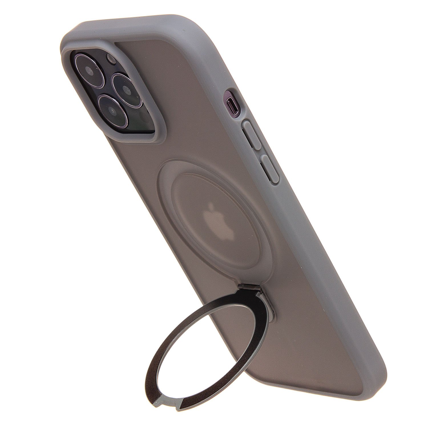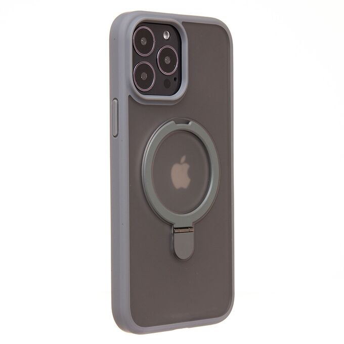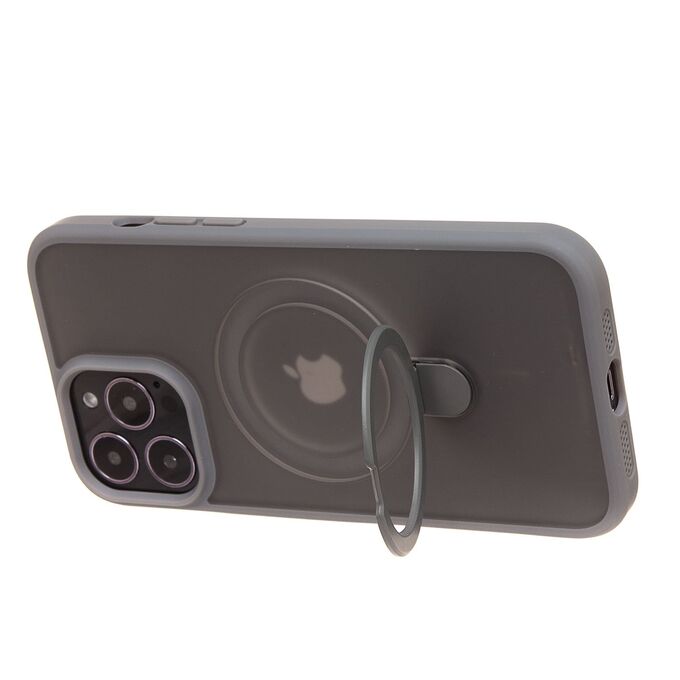Чехол с кольцом-MagSafe SM088 на Apple iPhone 14 Pro Max + трансформация в подставку / серый