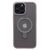 Главной особенностью аксессуара является встроенное магнитное кольцо-подставка, которое также позволяет эффективно заряжать смартфон посредством быстрой беспроводной зарядки стандарта Qi, при этом снимать магнитный чехол на время зарядки не нужно - достаточно просто присоединить зарядное устройство MagSafe или положить гаджет. Для чехла с кольцом MagSafe можно использовать любой аксессуар, поддерживающий технологию MagSafe: Powerbank, магнитный кошелек и другие.
