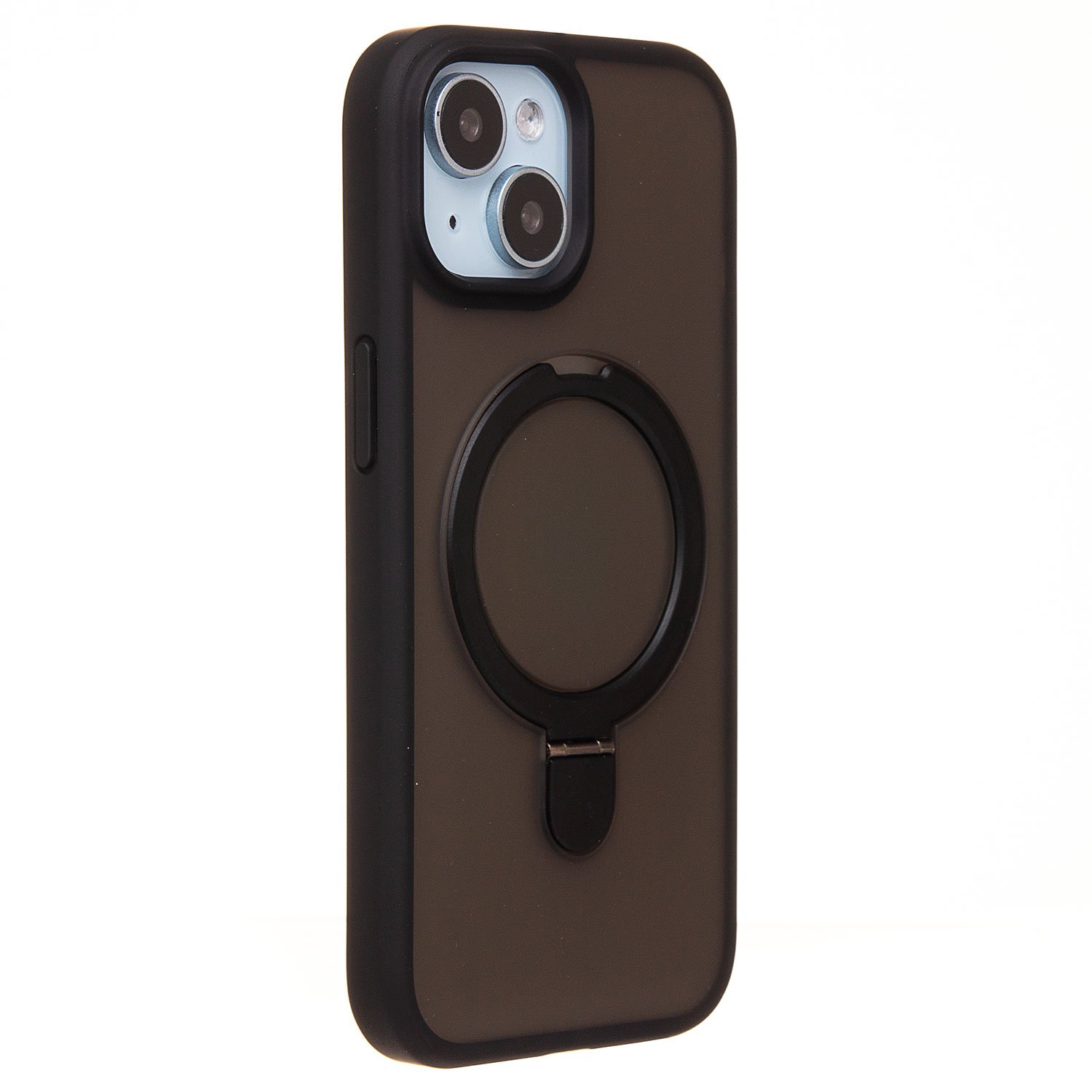 Чехол с кольцом-MagSafe SM088 на Apple iPhone 15 + трансформация в подставку / черный