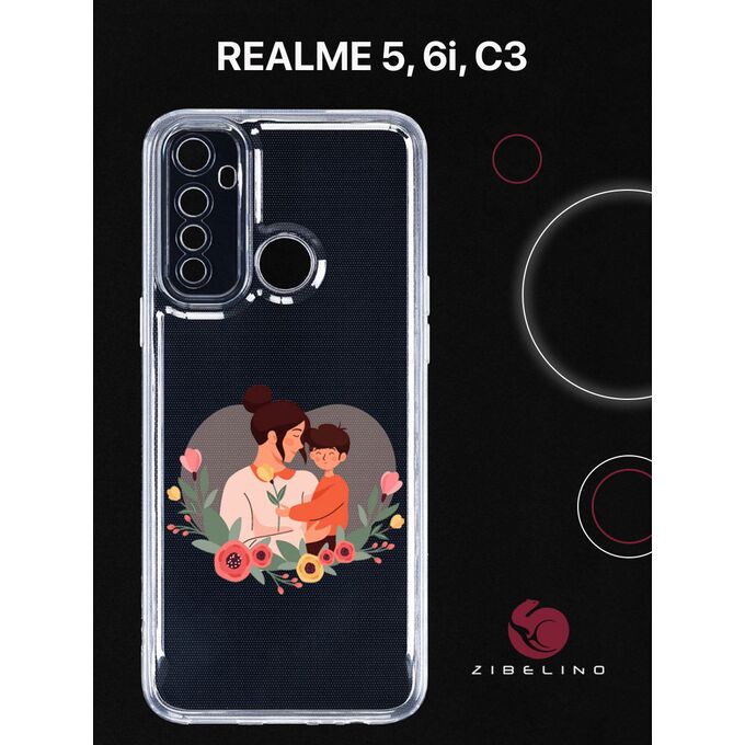Чехол накладка с рисунком для Realme 5, Realme 6i, Realme C3 прозрачный, с принтом СЫН МАМЫ (Реалми 5, Реалми 6и, Реалми Ц3)
