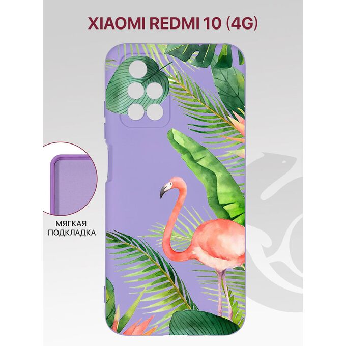 Чехол для Xiaomi Redmi 10 с рисунком, с защитой камеры, с мягкой подкладкой из микрофибры, противоударный, сиренево-лиловый, с принтом ФЛАМИНГО, Ксиоми Редми 10