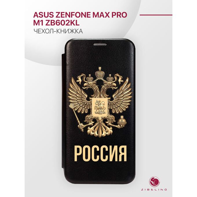 Чехол книжка Book для Asus Zenfone Max Pro M1 (ZB602KL) с рисунком, с магнитом, черный, с принтом РОССИЯ ОРЁЛ