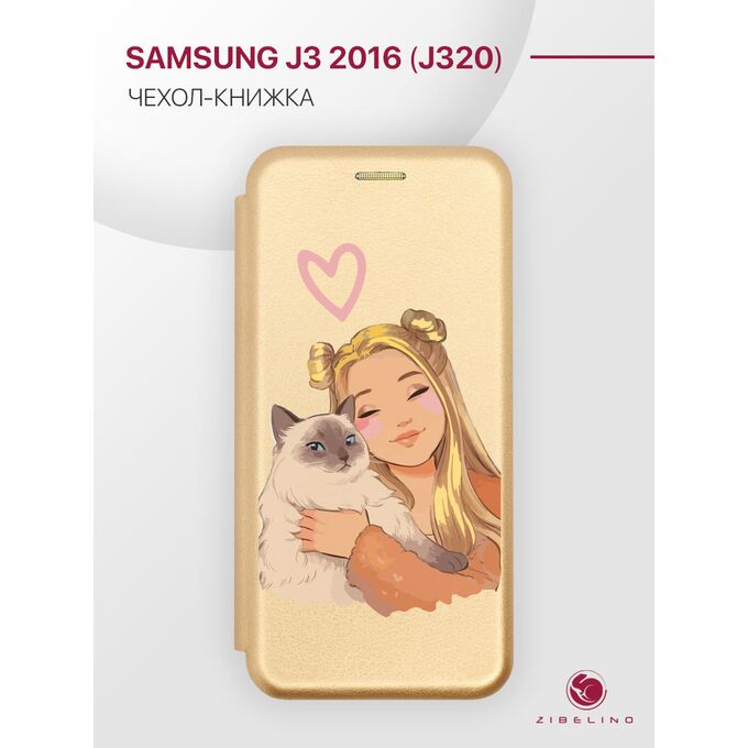 Чехол книжка для Samsung J3 2016 с рисунком, с магнитом, золотистый, с принтом ИДИЛЛИЯ