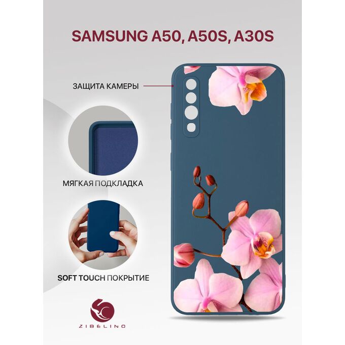 Чехол для Samsung Galaxy A50, A50s, Samsung A30s с рисунком, с защитой камеры, с мягкой подкладкой из микрофибры, противоударный, синий, с принтом ОРХИДЕЯ РОЗОВАЯ, Самсунг Галакси А50 А50s А30s