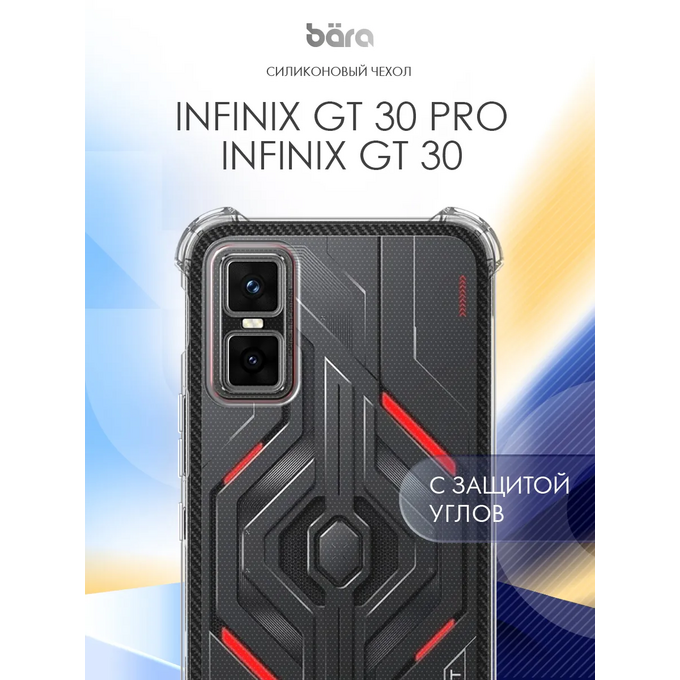 Силиконовый бампер BARA для Infinix GT 30 Pro/GT 30 — это прозрачная накладка, которая предлагает усиленную защиту углов и камеры вашего смартфона.