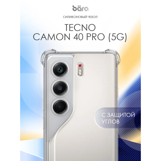 Силиконовый бампер BARA для Tecno Camon 40 Pro (5G) — это прозрачная накладка, которая предлагает усиленную защиту углов и камеры вашего смартфона.