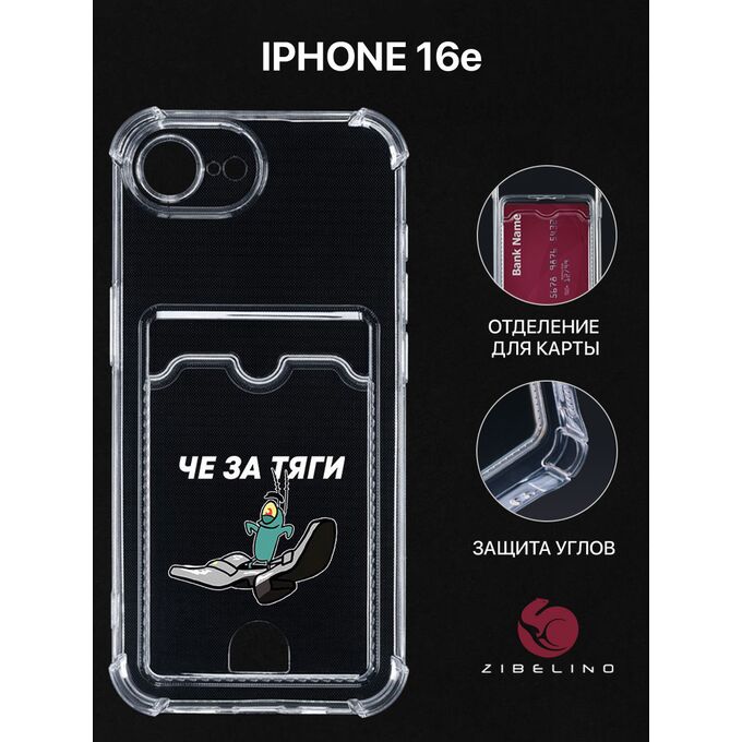 Чехол силиконовый Card Holder на iPhone 16e с рисунком, с карманом, с картхолдером, с защитой камеры, прозрачный с принтом ЧЁ ЗА ТЯГИ (Айфон 16е)