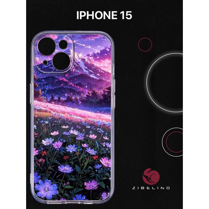 Чехол силиконовый для iPhone 15 прозрачный с рисунком, с защитой камеры, с принтом ЦВЕТЫ ВЕРШИН (Айфон 15)