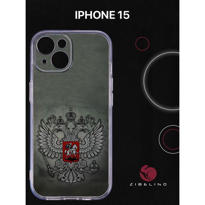 Чехол силиконовый для iPhone 15 прозрачный с рисунком, с защитой камеры, с принтом ГЕРБ НА ТЕМНОМ ФОНЕ (Айфон 15)