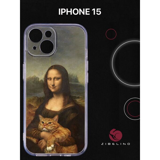 Чехол силиконовый для iPhone 15 прозрачный с рисунком, с защитой камеры, с принтом КОТОЛИЗА (Айфон 15)