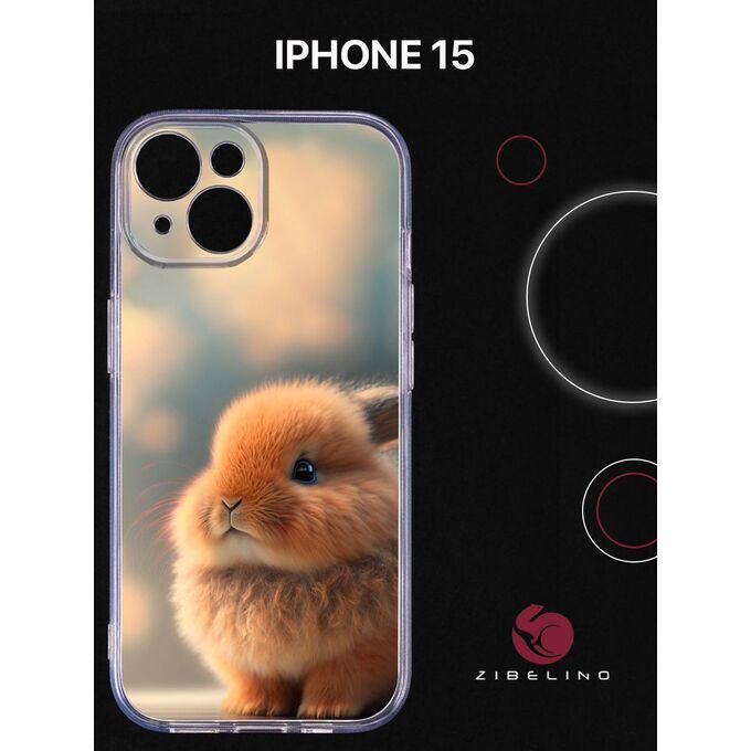 Чехол силиконовый для iPhone 15 прозрачный с рисунком, с защитой камеры, с принтом КРОЛ (Айфон 15)