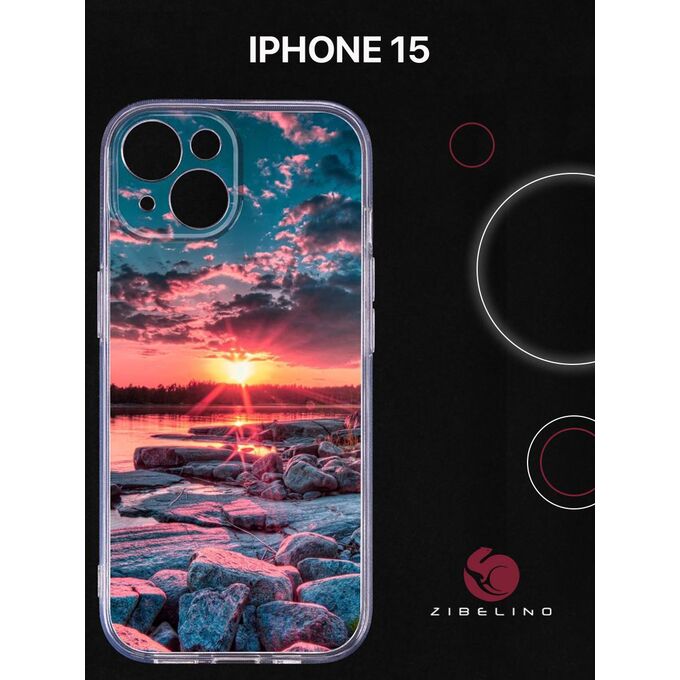 Чехол силиконовый для iPhone 15 прозрачный с рисунком, с защитой камеры, с принтом РАССВЕТ СОЛНЦА (Айфон 15)