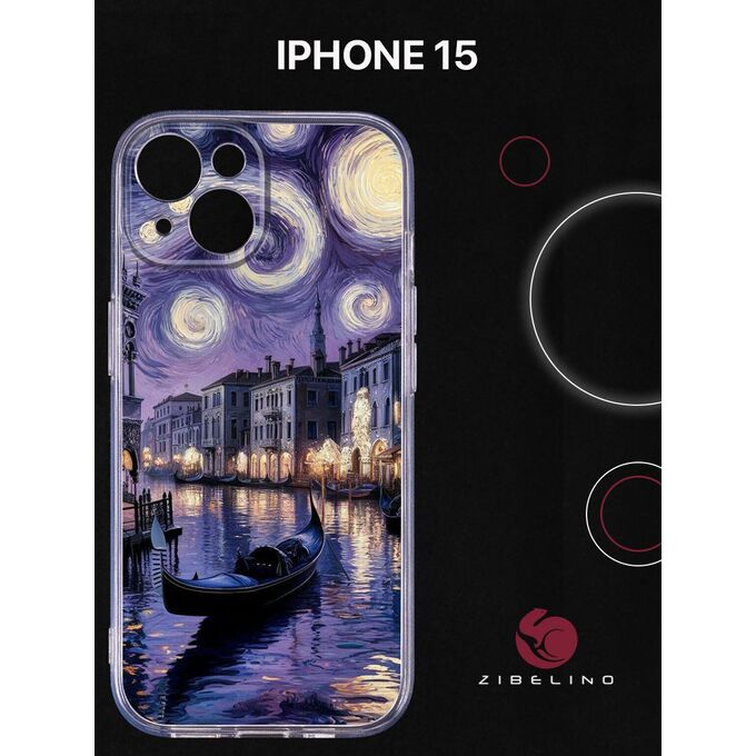Чехол силиконовый для iPhone 15 прозрачный с рисунком, с защитой камеры, с принтом ВАН ГОГ НА ВОЛНАХ (Айфон 15)