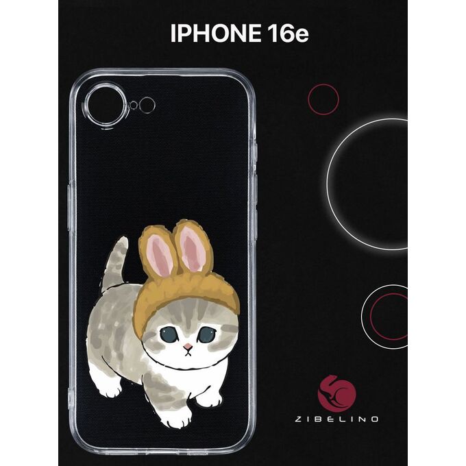 Чехол силиконовый для iPhone 16e (2025) прозрачный с рисунком, с защитой камеры, с принтом КОТИК С УШКАМИ (Айфон 16е)