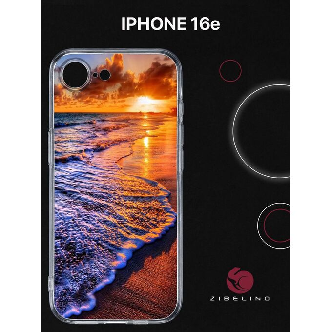 Чехол силиконовый для iPhone 16e (2025) прозрачный с рисунком, с защитой камеры, с принтом ЗАКАТ НА БЕРЕГУ (Айфон 16е)