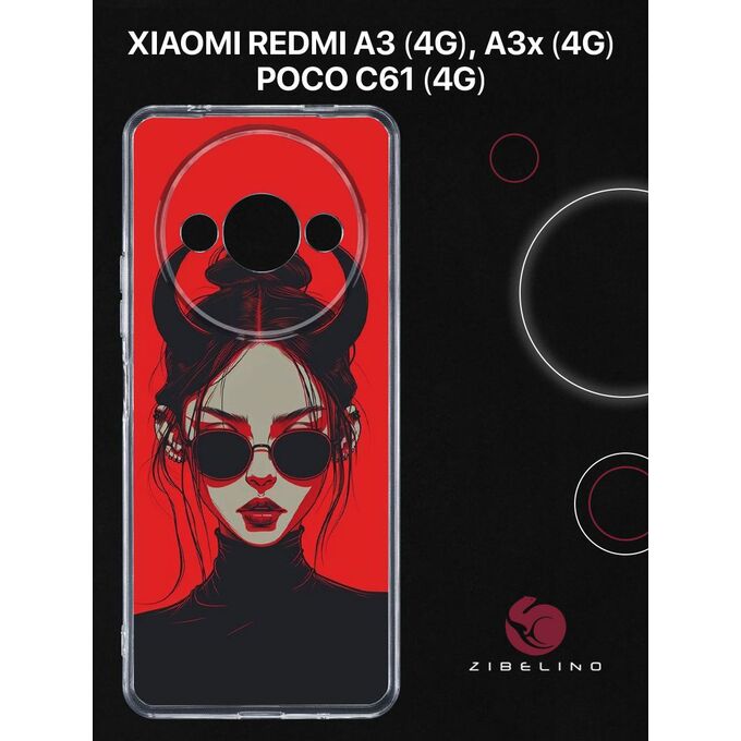 Чехол силиконовый для Xiaomi Redmi A3 (4G), Redmi A3x (4G), Poco C61 (4G) прозрачный с рисунком, с защитой камеры, с принтом ДЕВУШКА РОГА (Ксиоми Редми А3 А3x Поко С61)