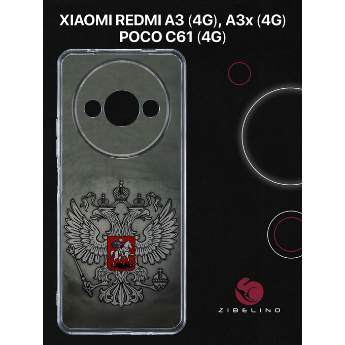 Чехол силиконовый для Xiaomi Redmi A3 (4G), Redmi A3x (4G), Poco C61 (4G) прозрачный с рисунком, с защитой камеры, с принтом ГЕРБ НА ТЕМНОМ ФОНЕ (Ксиоми Редми А3 А3x Поко С61)
