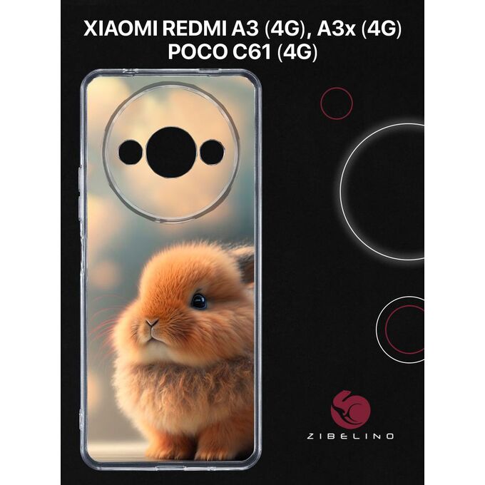 Чехол силиконовый для Xiaomi Redmi A3 (4G), Redmi A3x (4G), Poco C61 (4G) прозрачный с рисунком, с защитой камеры, с принтом КРОЛ (Ксиоми Редми А3 А3x Поко С61)