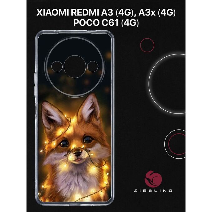 Чехол силиконовый для Xiaomi Redmi A3 (4G), Redmi A3x (4G), Poco C61 (4G) прозрачный с рисунком, с защитой камеры, с принтом ЛИСА ОГНИ (Ксиоми Редми А3 А3x Поко С61)