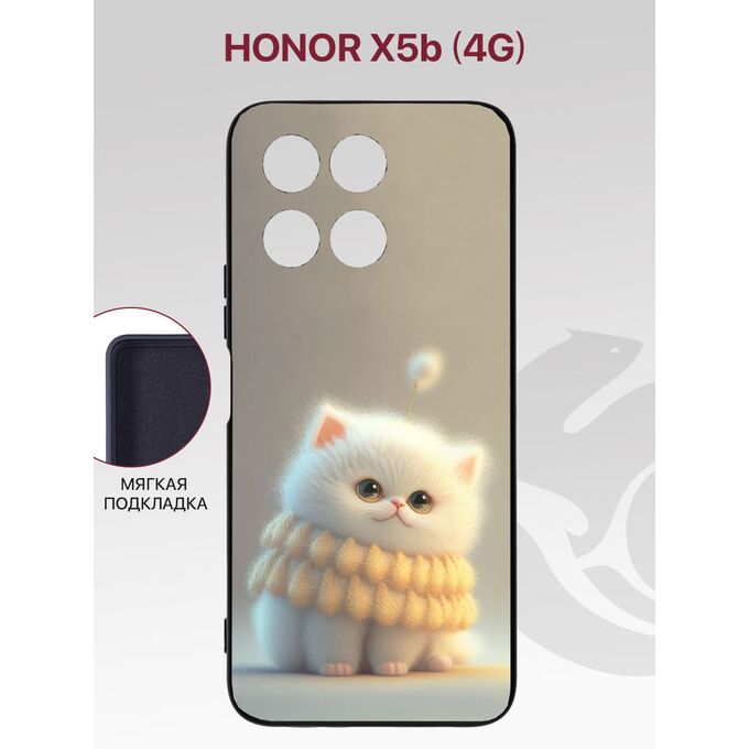 Чехол Soft для Honor X5b (4G) с рисунком, с защитой камеры, с мягкой подкладкой из микрофибры, противоударный, черный с принтом (Хонор X5b)