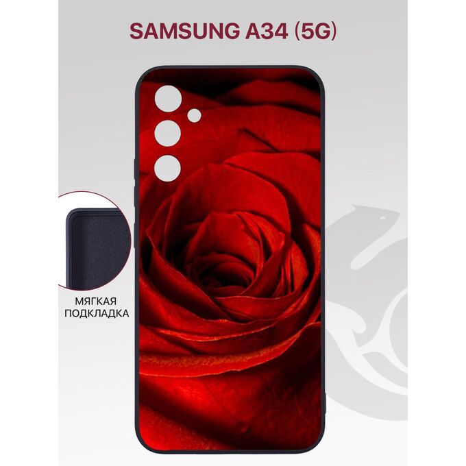 Чехол Soft для Samsung Galaxy A34 (5G) (A346) с рисунком, с защитой камеры, с мягкой подкладкой из микрофибры, противоударный, черный с принтом БУТОН РОЗЫ (Самсунг Галакси А34)