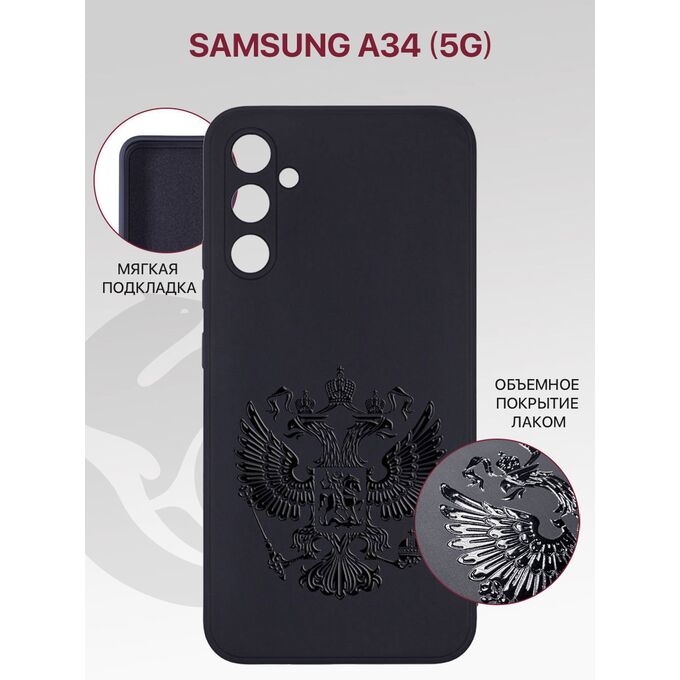 Чехол Soft для Samsung Galaxy A34 (5G) (A346) с объемным рисунком ГЕРБ ЛАК, с лаковым покрытием, с внутренней подкладкой из микрофибры, с рисунком черный с принтом (Самсунг Галакси А34)