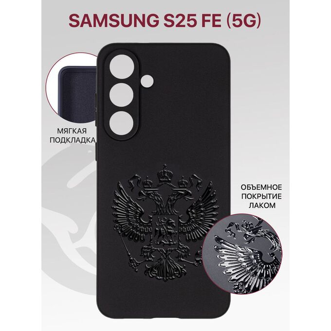 Чехол Soft для Samsung S25 FE Galaxy (5G) с объемным рисунком, лаковое покрытие, с защитой камеры, с внутренней подкладкой из микрофибры, черный с принтом ГЕРБ ЛАК (Самсунг Галакси S25 FE (5G)