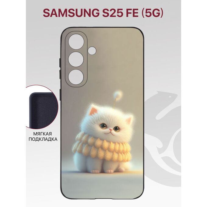 Чехол Soft для Samsung S25 FE Galaxy (5G) с рисунком, с защитой камеры, с мягкой подкладкой из микрофибры, противоударный, черный с принтом БЕЛЫЙ ПУШИСТИК (Самсунг Галакси S25 FE (5G)
