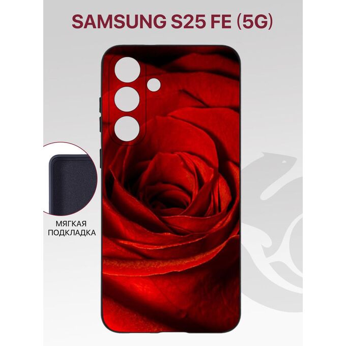 Чехол Soft для Samsung S25 FE Galaxy (5G) с рисунком, с защитой камеры, с мягкой подкладкой из микрофибры, противоударный, черный с принтом БУТОН РОЗЫ (Самсунг Галакси S25 FE (5G)