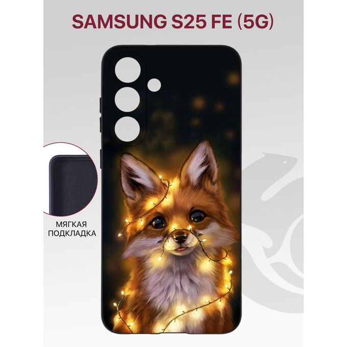 Чехол Soft для Samsung S25 FE Galaxy (5G) с рисунком, с защитой камеры, с мягкой подкладкой из микрофибры, противоударный, черный с принтом ЛИСА ОГНИ (Самсунг Галакси S25 FE (5G)