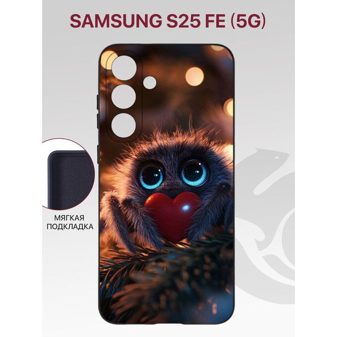 Чехол Soft для Samsung S25 FE Galaxy (5G) с рисунком, с защитой камеры, с мягкой подкладкой из микрофибры, противоударный, черный с принтом ПАУЧЬЕ СЕРДЦЕ (Самсунг Галакси S25 FE (5G)