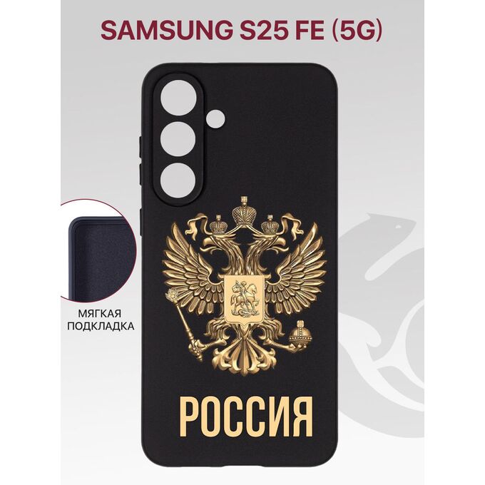 Чехол Soft для Samsung S25 FE Galaxy (5G) с рисунком, с защитой камеры, с мягкой подкладкой из микрофибры, противоударный, черный с принтом РОССИЯ ОРЁЛ (Самсунг Галакси S25 FE (5G)