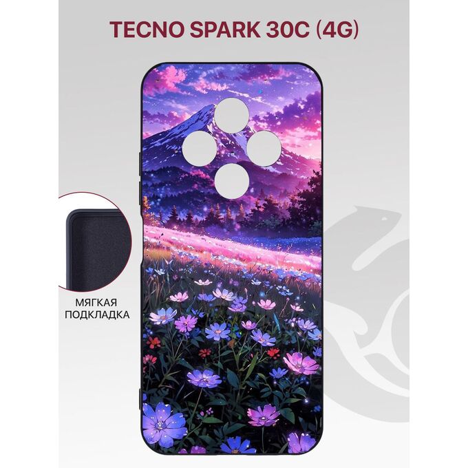 Чехол Soft для Tecno Spark 30C (4G) с защитой камеры, с внутренней подкладкой из микрофибры, черный с принтом (Текно Спарк 30С)