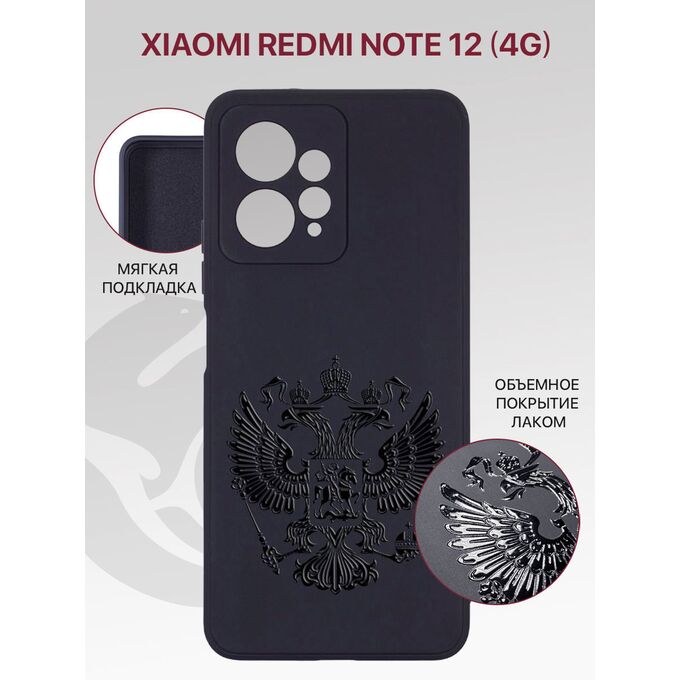 Чехол Soft для Xiaomi Redmi Note 12 (4G) с объемным рисунком ГЕРБ ЛАК, с лаковым покрытием, с внутренней подкладкой из микрофибры, с рисунком черный с принтом (Ксиоми Редми Нот 12)