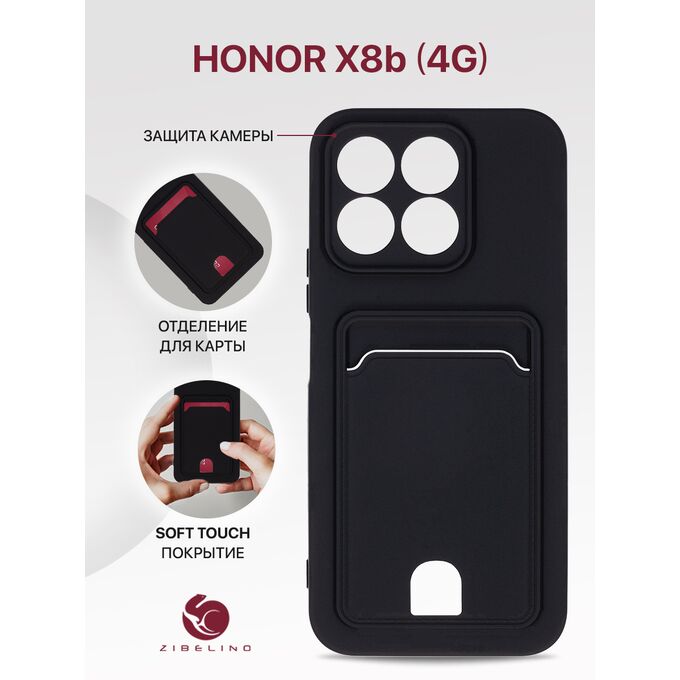 Противоударный силиконовый чехол на телефон Honor X8b (4G) с картхолдером, защитой камеры, покрытием Soft Touch и мягкой подкладкой из микрофибры в области кармана.
