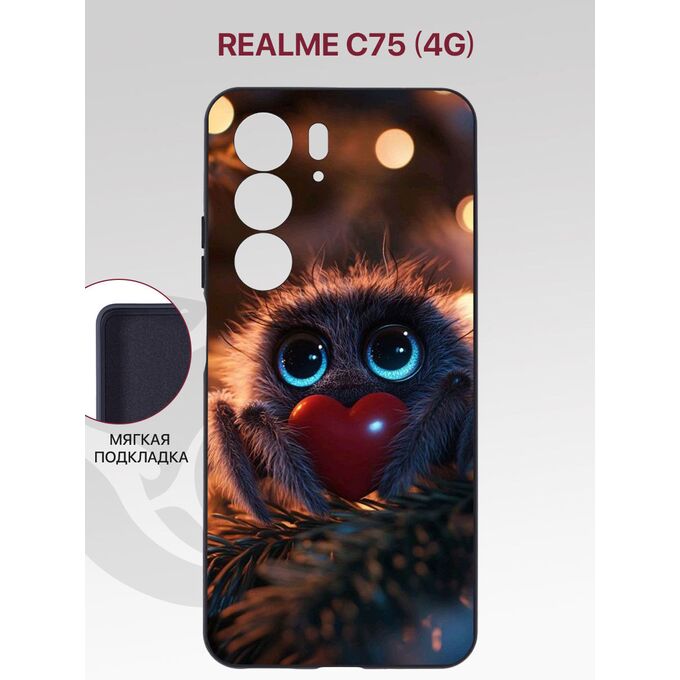 Чехол Soft на Realme C75 (4G) с рисунком, с защитой камеры, с мягкой подкладкой из микрофибры, противоударный, черный с принтом ПАУЧЬЕ СЕРДЦЕ (Реалми С75)