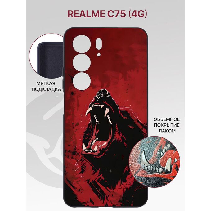 Чехол Soft на Realme C75 (4G) с защитой камеры, с внутренней подкладкой из микрофибры, черный с принтом МЕДВЕДЬ ПАСТЬ ЛАК, лаковое покрытие (Реалми С75)