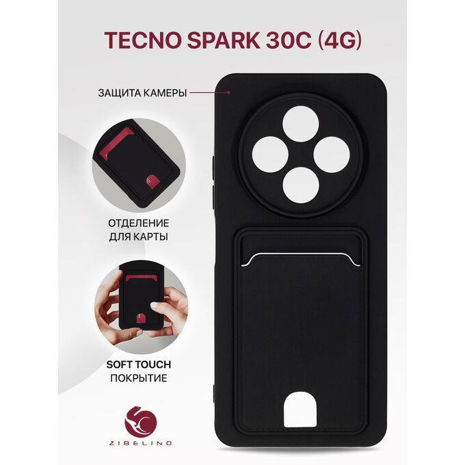 Чехол Soft на Tecno Spark 30C (4G) с карманом, покрытие soft-touch, с защитой камеры, черный (Текно Спарк 30С)