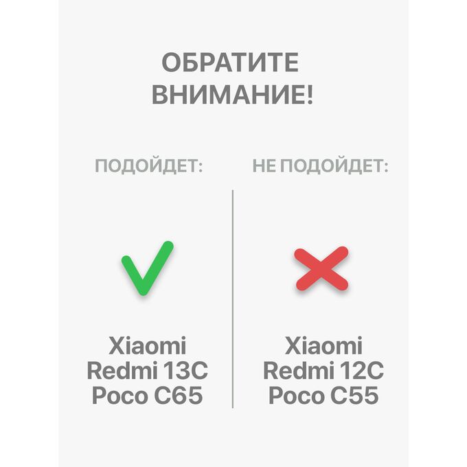 Набор Чехол + Стекло на Xiaomi Redmi 13C (4G), Xiaomi Poco C65 (4G) с мягкой подкладкой из микрофибры - это чехол накладка из плотного полиуретана. Чехол накладка Redmi 13C 4G имеет матовую поверхность c покрытием Soft Touch, благодаря чему приятен на ощупь, не скользит в руках, на нем не остаются отпечатки пальцев и пыль. Чехол на телефон Редми 13С 4G софт тач более практичен в использовании: на нем не так видны потертости и царапины, как на глянцевых чехлах. Даже при падении противоударный чехол Редми 13С 4G способен защитить ваш смартфон от вмятин, ссадин и потертостей. Важная особенность чехла - выступающие бортики над дисплеем и модулем камеры, что снижает вероятность повреждения смартфона при падении. У тонкого чехла Редми 13 С 4G соблюдены все технологические отверстия смартфона: для камеры, наушников, разъема зарядки, микрофона и т.д. Силиконовый чехол Редми 13С 4G с защитой камеры обеспечивает полную защиту блока камер. Внутренняя мягкая подкладка чехла Поко С 65 4G с микрофиброй гарантирует отсутствие царапин на задней панели смартфона. Защитный чехол Redmi 13C 4G Soft Touch подойдет для подарка друзьям и близким. Каждый чехол Redmi 13 C 4G проверяется перед отправкой.
