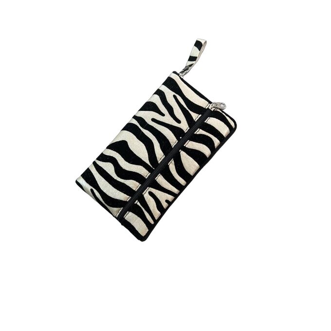 Чехол-сумочка для телефона на молнии "Зебра" 15х9см экокожа+текстиль c дополнительным карманом серебро