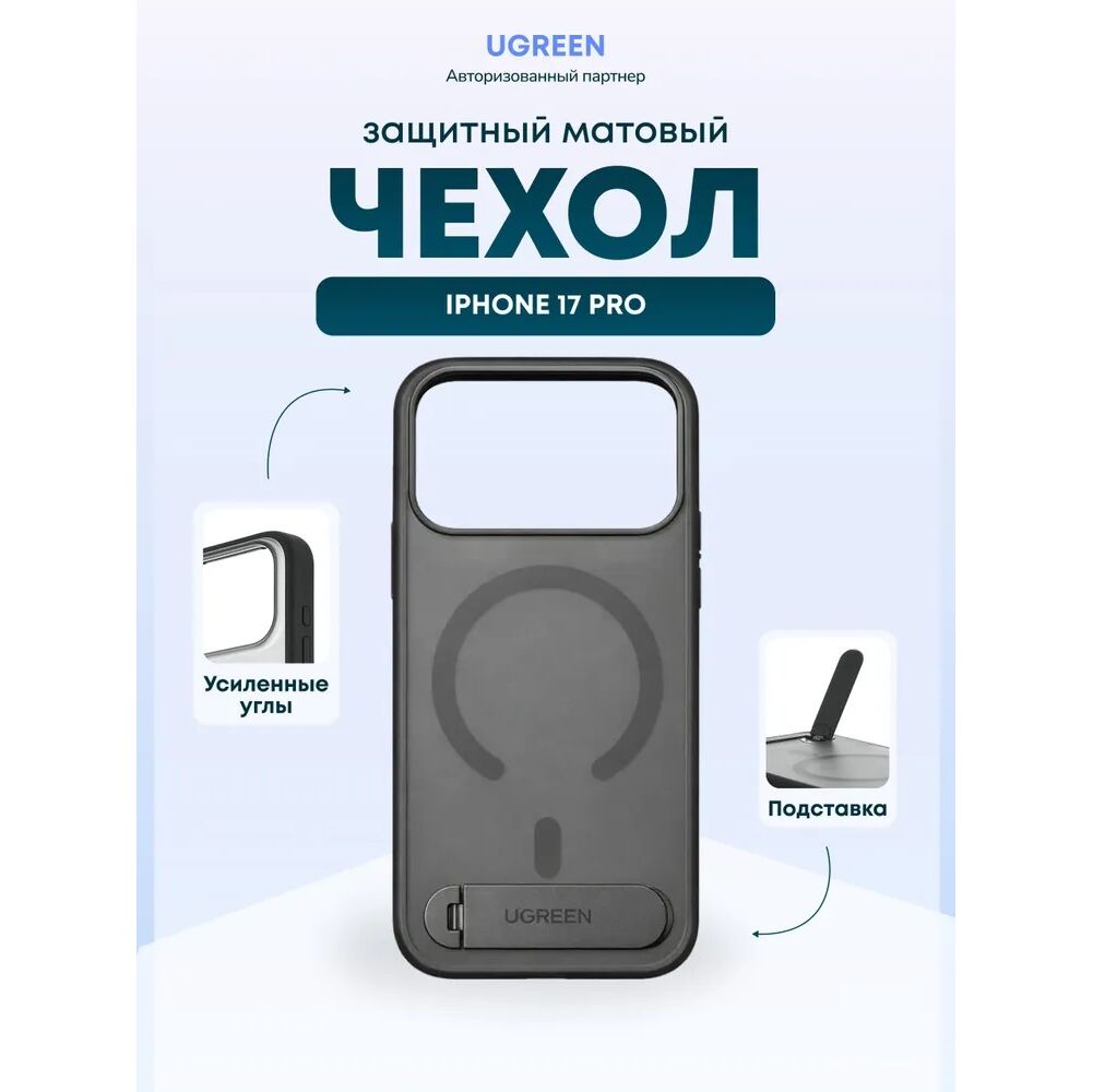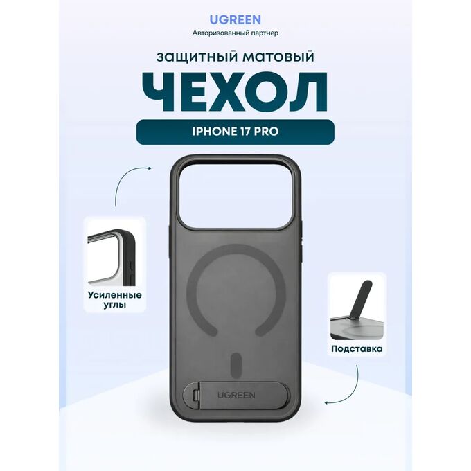 Чехол UGREEN CA317 (95006) Magnetic Protective Case with Stand iPhone 17 Pro Max 6,9'' Black/Transparent