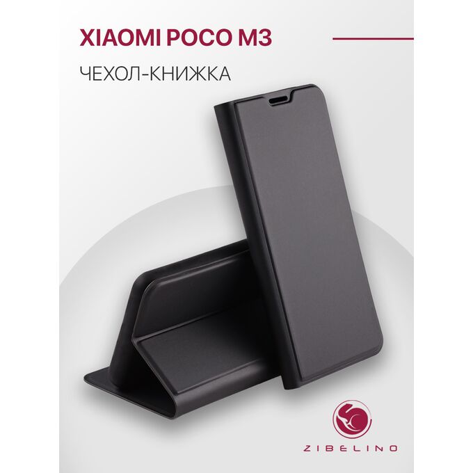 Чехол книжка Premium для Xiaomi Poco M3 ультратонкий с карманом, с магнитом, черный (Ксиоми Поко М3)