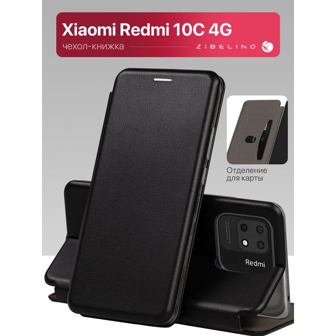 Чехол книжка Book для Xiaomi Redmi 10C (4G) противоударный, с магнитом, черный (Ксиоми Редми 10C)