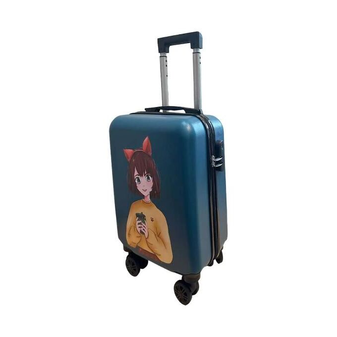 Облегченный матовый чемодан на 4 колесиках с рисунком аниме подходит под требования к ручной клади большинства авиакомпаний, т.к. его размеры не превышают 47х33х21 см. Небольшой аксессуар удобно брать с собой в самолет для путешествий с ручной кладью или в багаж в машину. Максимальное наполнение не более 10 кг.