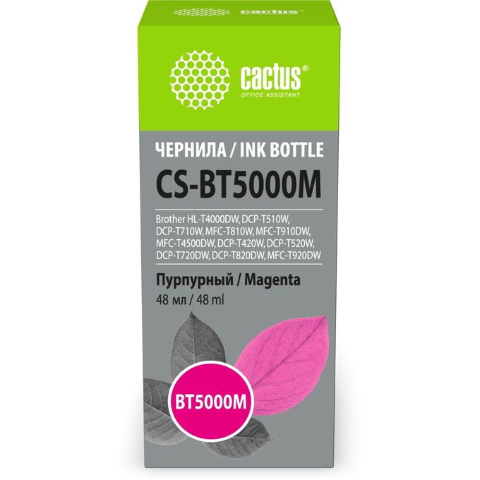 Чернила Cactus CS-BT5000M пурпурный 48мл для Brother HL-T4000DW, DCP-T510W, DCP-T710W, MFC-T810W, MFC-T910DW, MFC-T4500DW, DCP-T420W, DCP-T520W