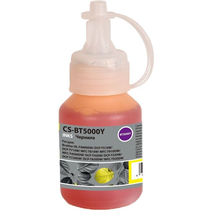 Чернила Cactus CS-BT5000Y желтый 48мл для Brother HL-T4000DW, DCP-T510W, DCP-T710W, MFC-T810W, MFC-T910DW, MFC-T4500DW, DCP-T420W, DCP-T520W